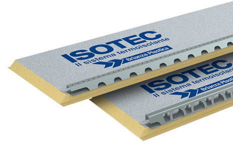 La gamma termoisolante Isotec di Brianza Plastica rappresenta una soluzione avanzata per l’isolamento termico ventilato dell’intero involucro edilizio. Il sistema Isotec è costituito da pannelli preassemblati in poliuretano espanso rigido, rivestiti in intradosso ed estradosso da una lamina di alluminio goffrato e dotati di correntino integrato nel pannello, con differente geometria a seconda di applicazioni a tetto o in facciata.