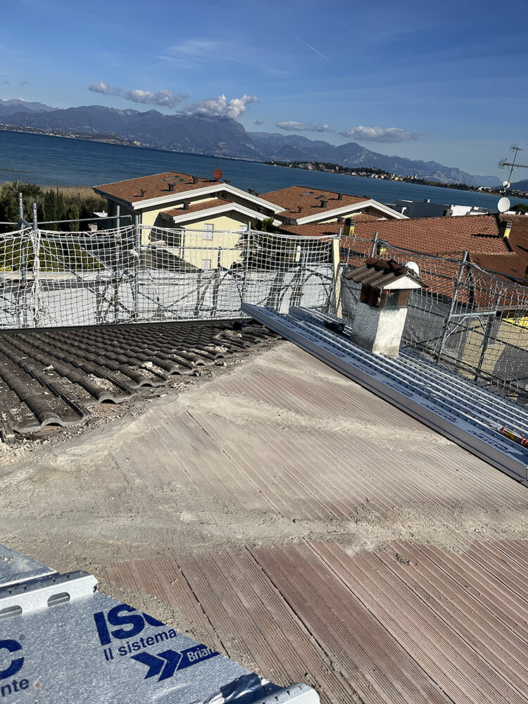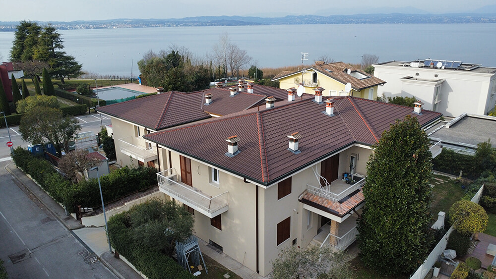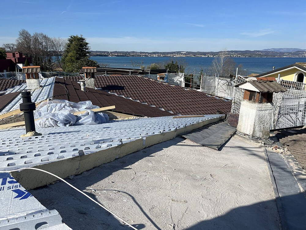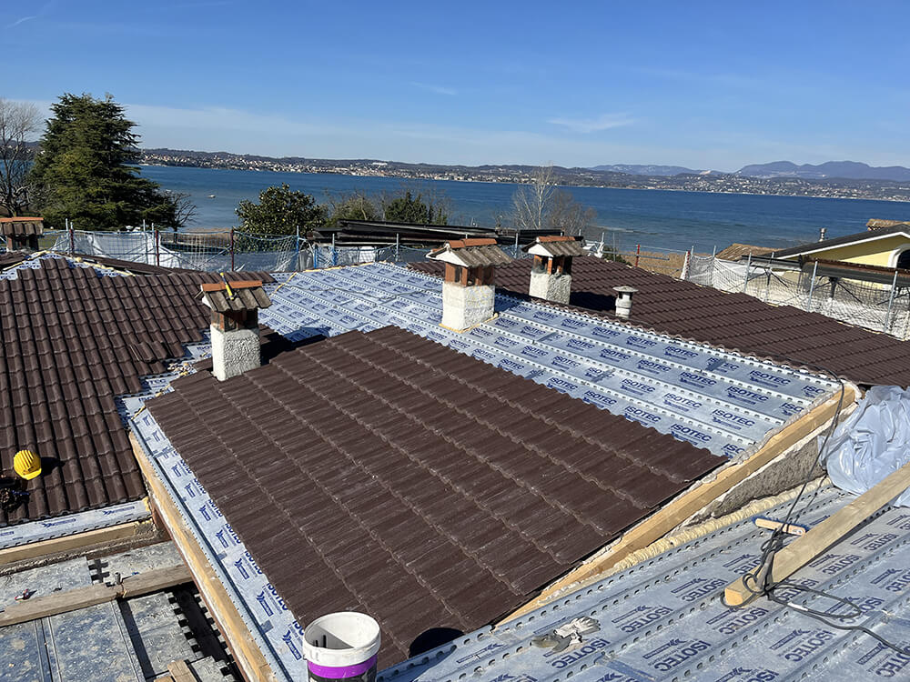 Il grazioso condominio affacciato sulle sponde del lago di Garda a Sirmione, composto da 8 unità abitative disposte su due livelli fuori terra, realizzato nel 1987, è stato oggetto di un intervento di ristrutturazione profonda che ha riguardato sia l’efficientamento sismico che quello energetico. Per l’isolamento della complessa ed estesa copertura – articolata in numerose falde – i progettisti hanno sposato la scelta dell’isolamento ventilato realizzato con il Sistema Isotec.